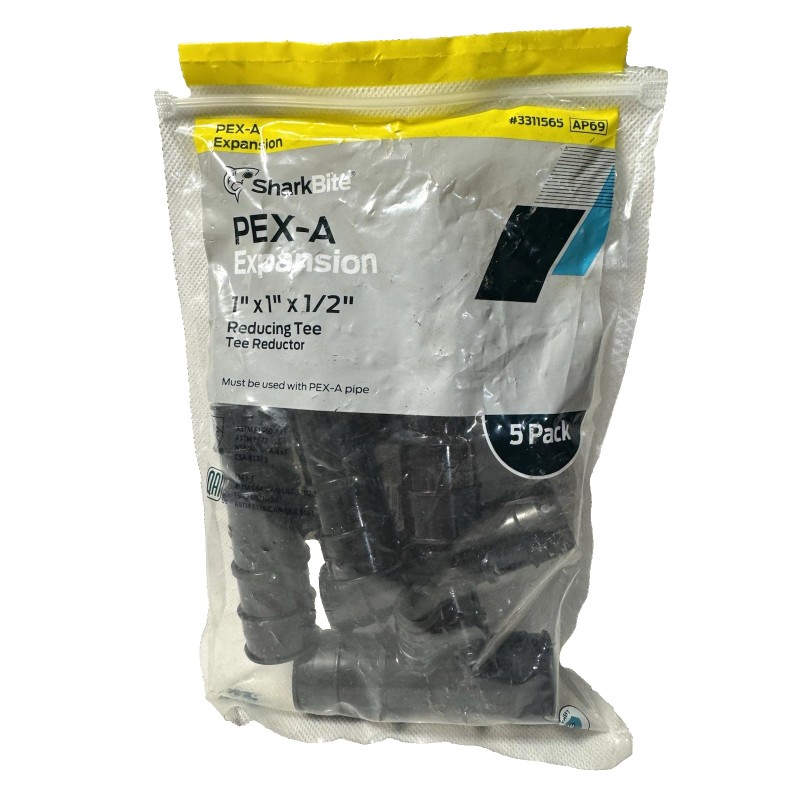 SharkBite 1" X 1" X 1/2" Inch PEX-A Expansion Reducing Poly Tee (5-Pack) NEW