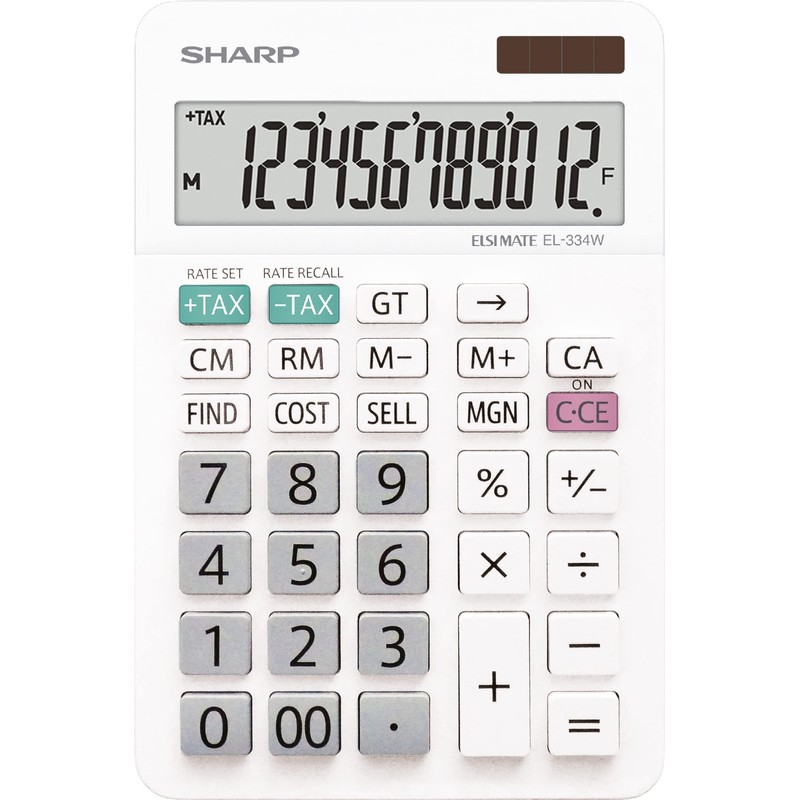 Sharp Tischrechner EL-334W (12-stellig, klappbarer Ständer, Solar) Weiß