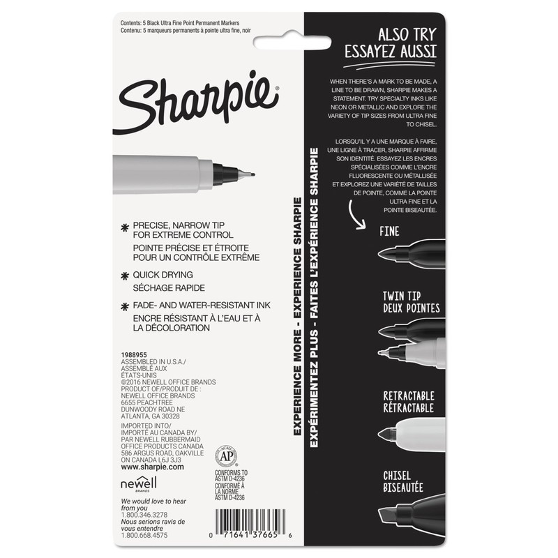 Sharpie 37665PP Permanent Markers Ultra Fine Point Black 5/Pack