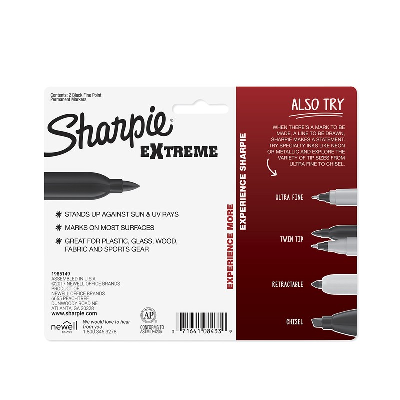 SHARPIE Extreme Permanent Markers, Fine Point, Black, 6 Packs of 2 (12 Markers)