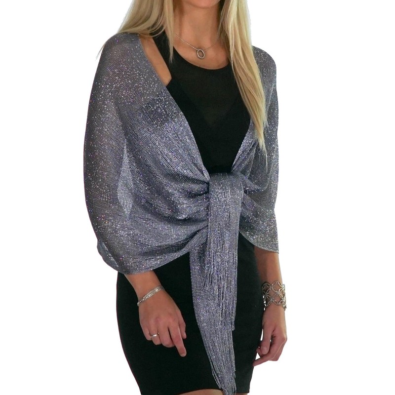 Shawls and Wraps for Evening Dresses, Wedding Shawl Wrap Fringes Scarf for Women Metallic Grey Silver Petal Rose