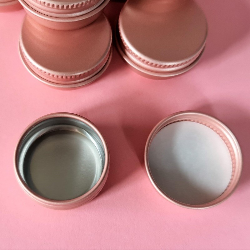 - Pack of 10 x mini 10ml rose gold round aluminium tins with a ribbed screw on lid. Food safe and recyclable.