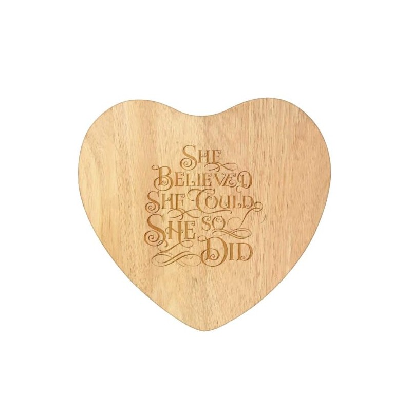 'She Believed She Could' Wooden Heart Shaped Chopping/Cutting Board (WB00080520)