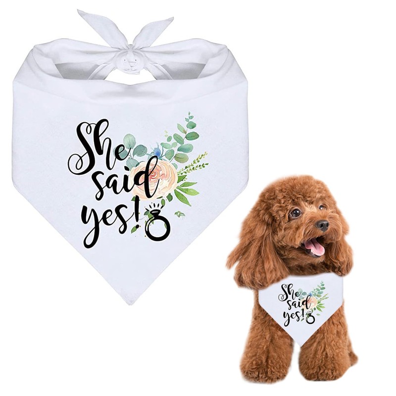 She Said Yes Dog Bandana, White Pet Scarf Proposal Wedding Engagement Party Dog Bandana Dog Photo Props Accessories