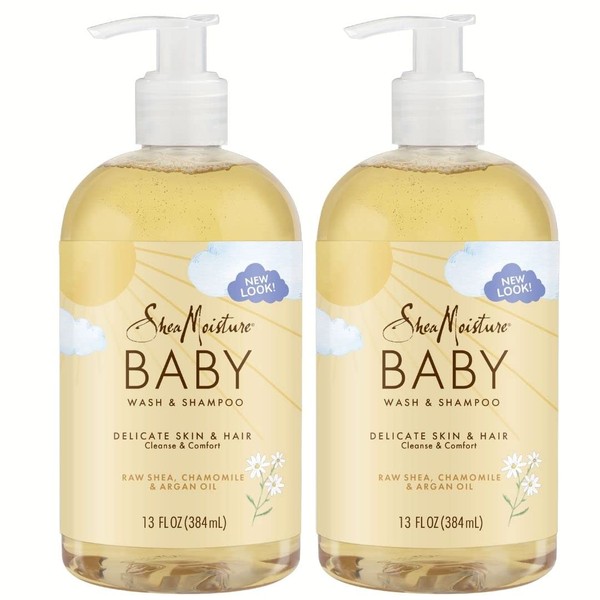 Shea Moisture Raw Shea Chamomile & Argan Oil Baby Wash & Shampoo, Gentle Cleansing, Frankincense & Myrrh, Calming & Comforting for Baby’s Soft Skin (Pack of 2-13 Fl Oz Ea)