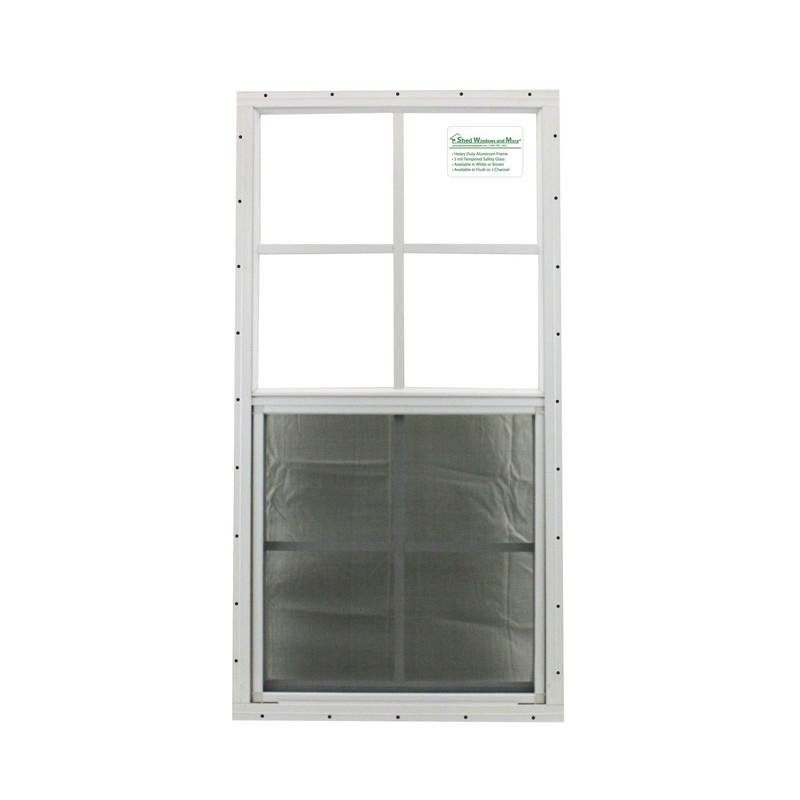 Shed Windows and More 18" X 36" White Aluminum Window Flush Mount, Safety/Tempered Glass Playhouse Windows, Chicken Coop Windows