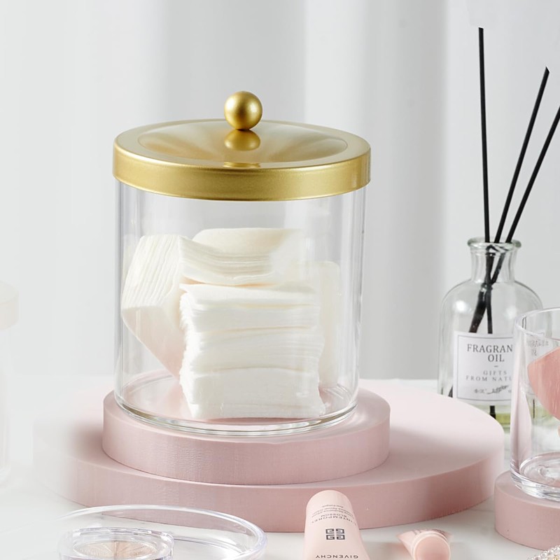 - ✅STORAGE MADE STYLISH - Durable acrylic high quality apothecary jar with metal Gold lid combine BEAUTY and organization. It's not made of glass but it sure looks like one, pretty sturdy and very aesthetic.rose gold bathroom decor