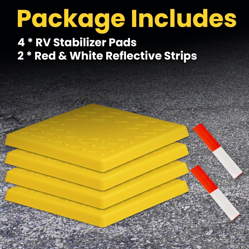 - Durable Construction: Crafted from heavy-duty HDPE plastic, these rv stabilizer jack pads is resists cracking, UV rays, and -40°F to 120°F temps. Lighter and easier to handle than wood blocks. So you can relax in your RV without it wobbling.