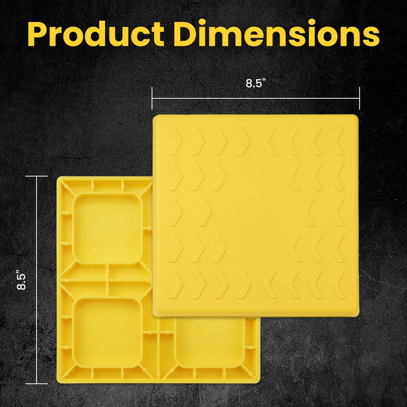 - Non-Slip Design: Features a textured surface to prevent trailer stabilizers, tires, and jacks from shifting. Also works with leveling blocks to enhance stability on top of the stack.