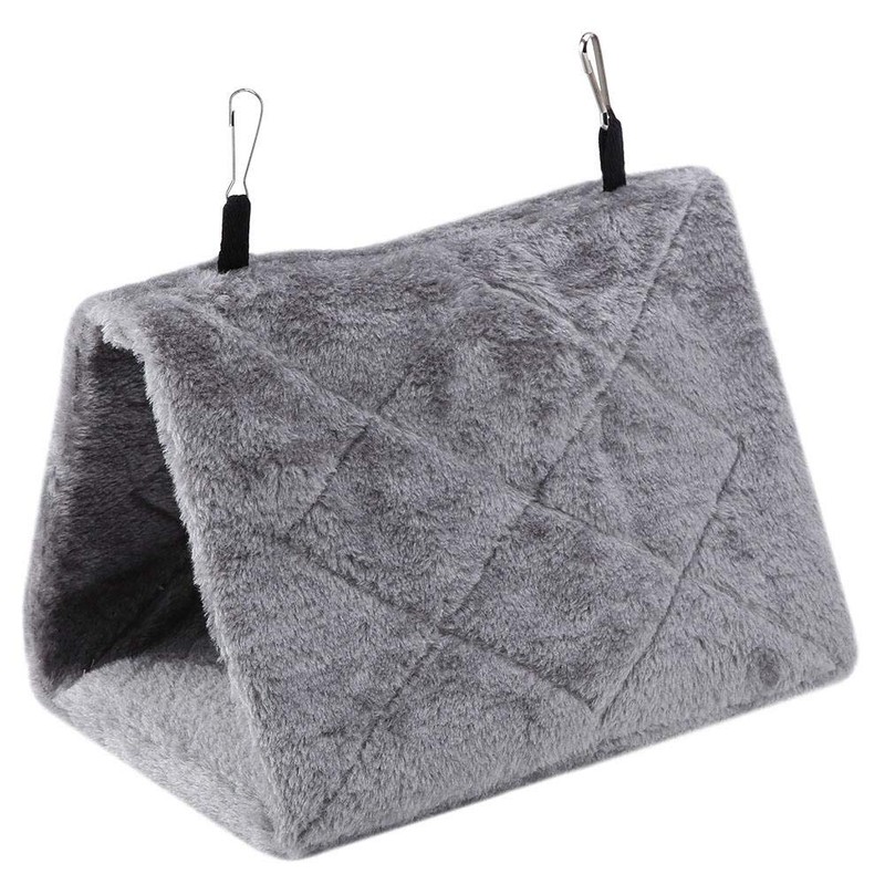 Sheens Bird Hammock, Warm Plush Parrot Hanging Bed Cave Happy Hut Hideaway for Parakeet Cockatiel Lovebird Budgie Finch Canary Cockatoo African Grey [M-Grey]