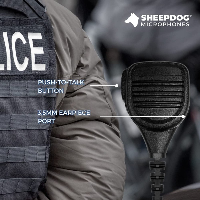 SHEEPDOG MICROPHONES PRO Speaker Microphone, 6-Pin Quick Disconnect, 3.5mm Earpiece Port
