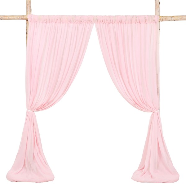 Sheer Curtain Drapes 10ft x 8ft Pink Chiffon Fabric Backdrop Drapes Curtain for Wedding Arch Party Window Decoration