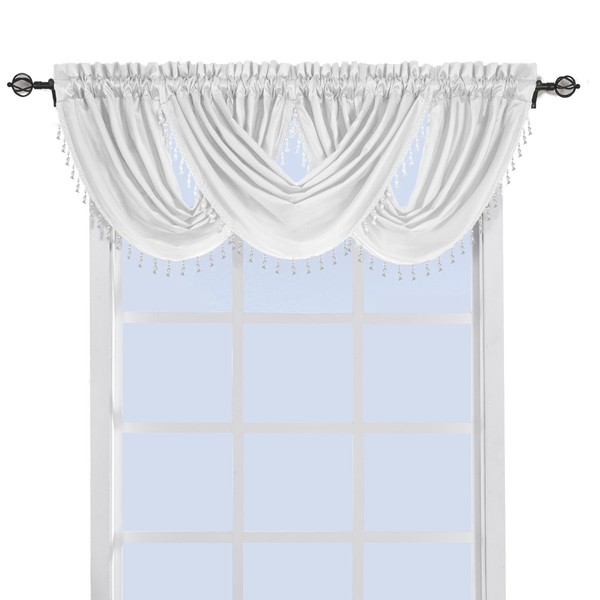sheetsnthings 100% Polyester White Soho Waterfall Decorative Trim Window Valance 57"x37" (Single)