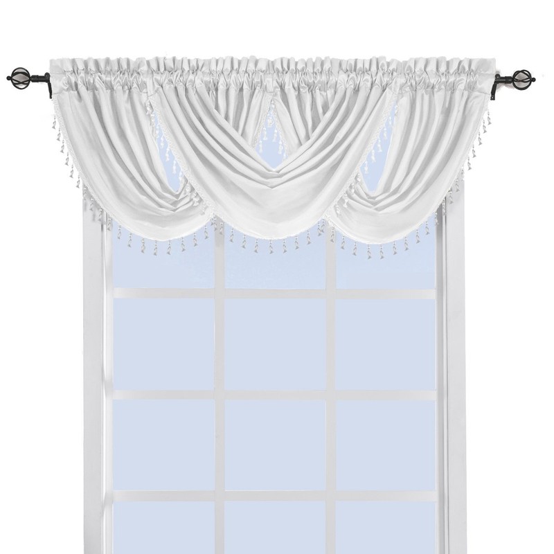 - MATERIAL- Our Soho Waterfall Valance is made of 100-Percent Pure Polyester with a Decorative Trim of Elegant Beaded Tassels