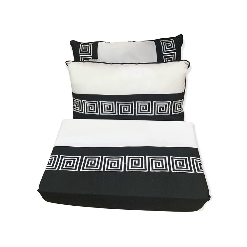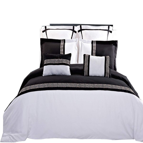 - THE EMBROIDERED DUVET COVER SET: 100% Microfiber Full/Queen (Black and White) 7-Piece Set: ONE EMBROIDERED DUVET Cover 90" Wide by 92" Long with Button Closure, TWO Pillow Shams 20" Wide by 26" Long, TWO Euro Shams 26" Wide by 26" Long and TWO Decorative Pillows 12" Wide by 18" Long