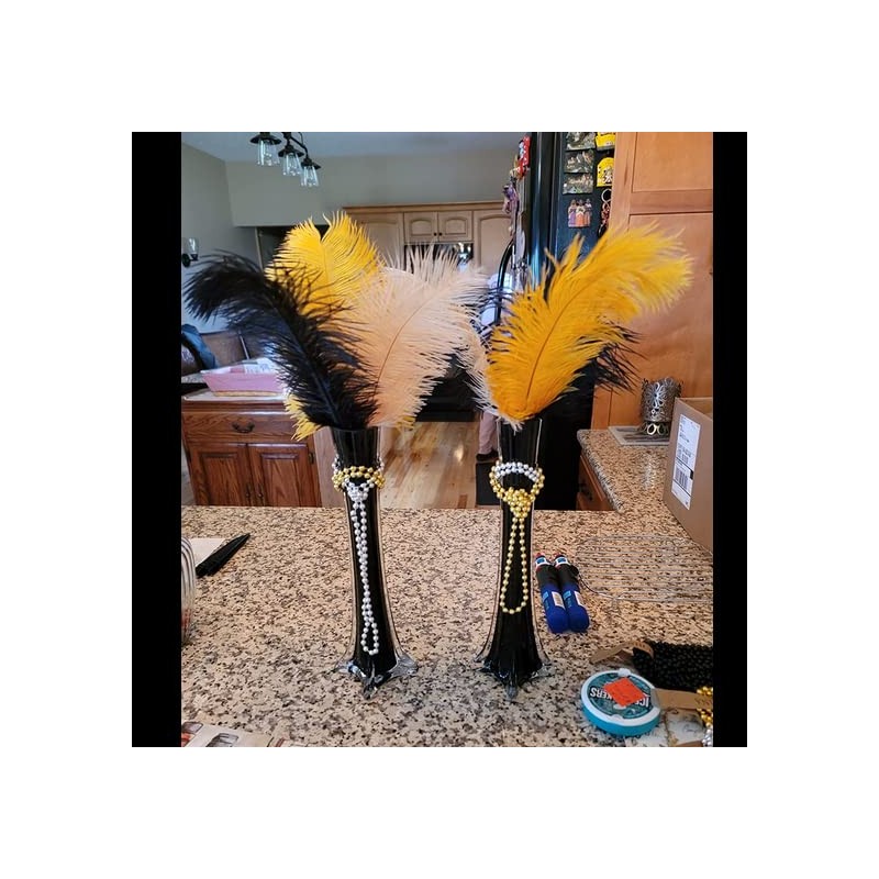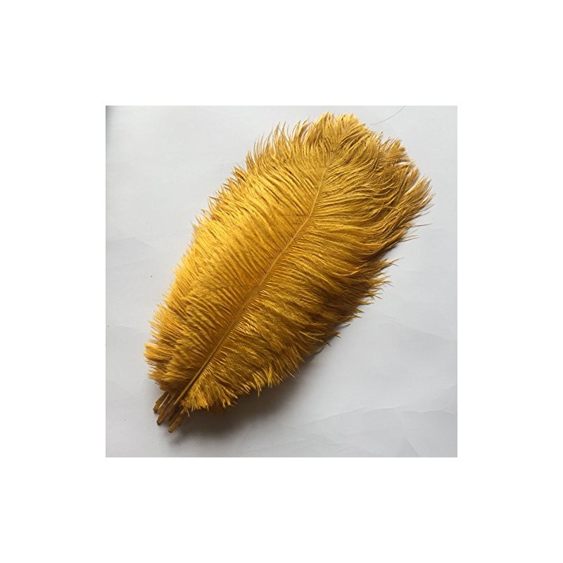 Shekyeon 12-14inch(30-35cm) Ostrich Feathers Plumes for Wedding Centerpieces Pack of 10 (Golden)