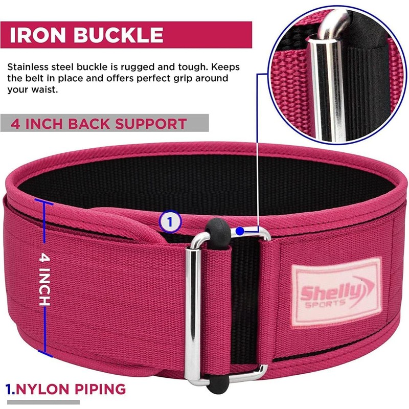 Shelly Weight Lifting Belt for Back Support Premium Self Locking Weightlifting belt of Men and Women Deadlift Training Belt 4 Inch Nylon with Metal Buckle (Pink, Large)