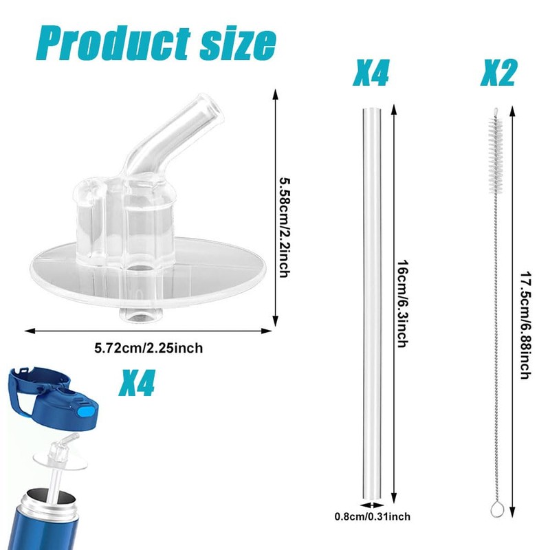 - Value Pack: You will get 4 pieces of replacement straw nozzles, 4 pieces of straws and 2 pieces of straw cleaning brushes, practical functions and sufficient quantity can meet your use and replacement needs