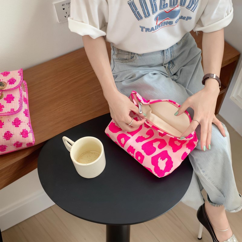 - 【CHIC AND TRENDY DESIGN】:Canvas cosmetic bags show a stylish pink leopard pattern, combining fashion and functionality. The eye-catching design ensures that you stand out anywhere.