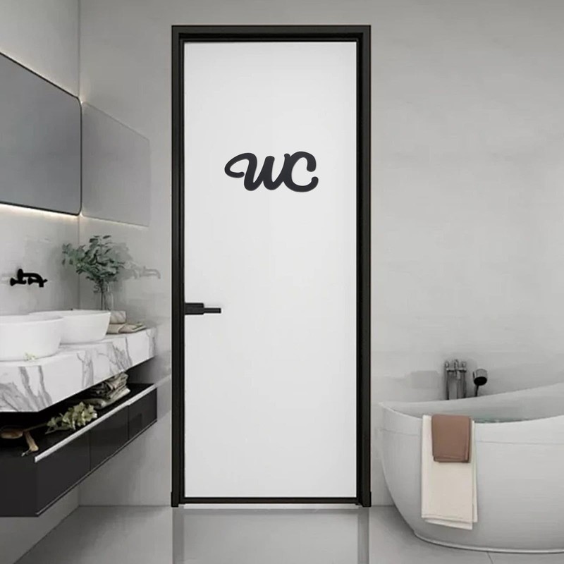 SHENGYIG Schwarze Acryl-Türdekoration für Badezimmer & Toilette – Selbstklebendes WC-Schild, wasserfest & langlebig