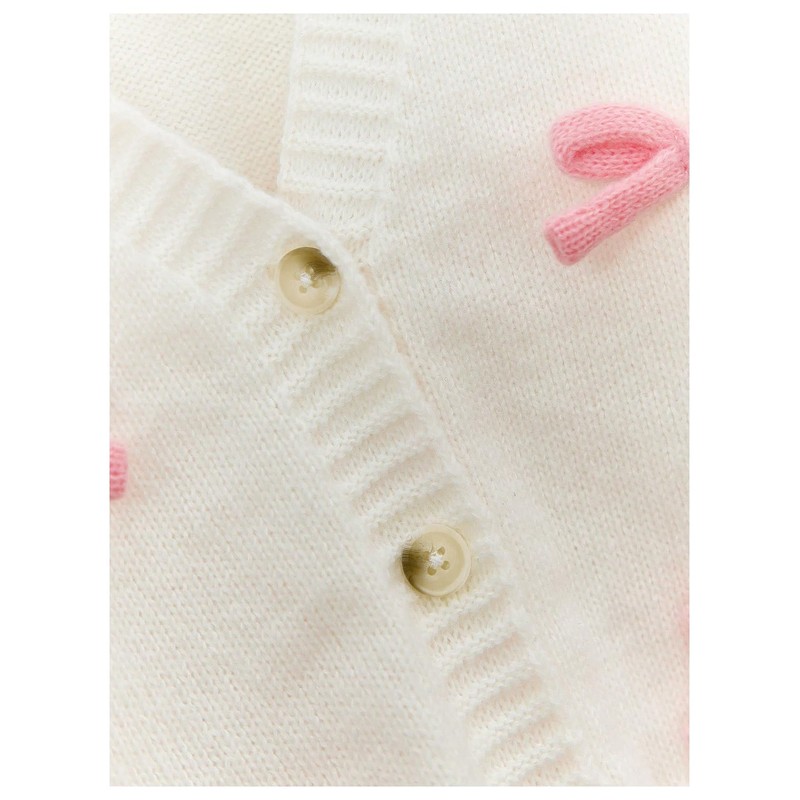 SHENHE Girl's Bow Button Down Knitted Cardigan V Neck Loose Cute Crop Sweater Outwear White 8 Years