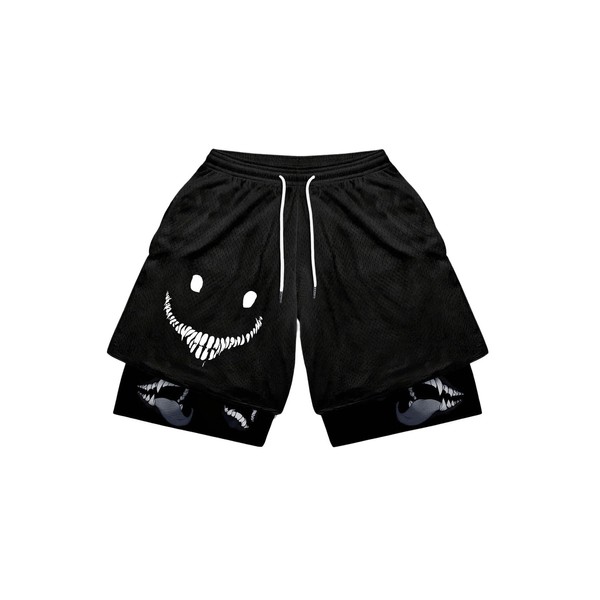 - Features: 2 in 1 mesh shorts for men, y2k gothic shorts, drawstring waist, basketball sports shorts with liner, patterned