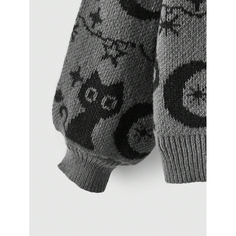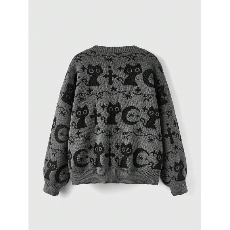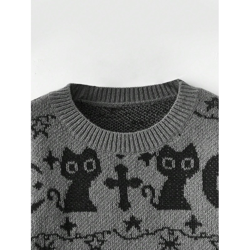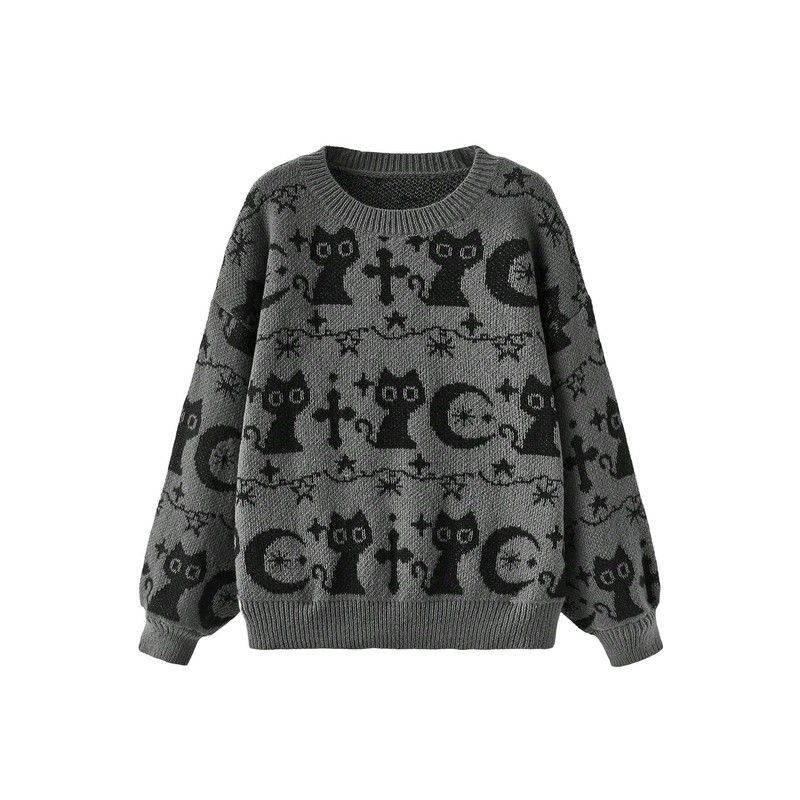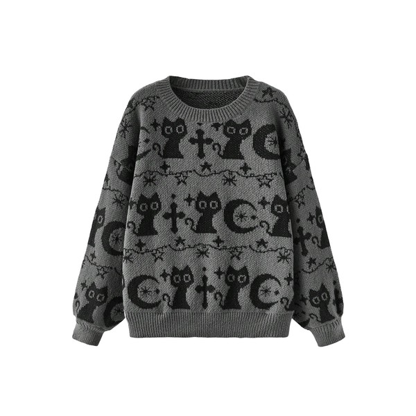 - Feature: goth cartoon pattern, round neck, long sleeve, oversized pullover sweater for women