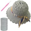 SHENJILL Crochet Kit for Beginners with Crochet Yarn Women Sun Straw Hat Beginner Knitting Kit for Adults Easy Starter Yarn Kits for Crocheting Easy-to-Follow Instructions (Sliver Grey)