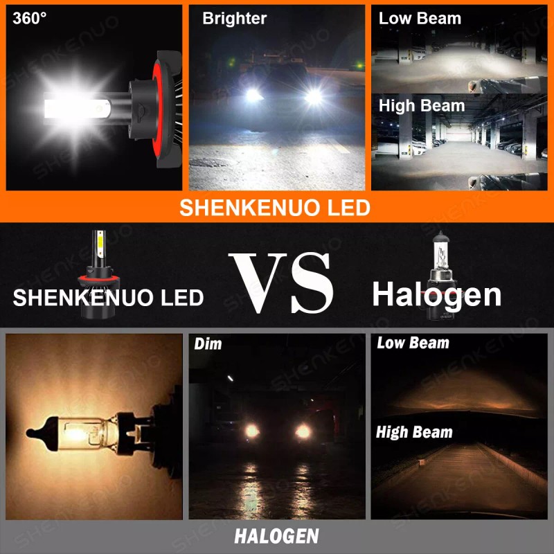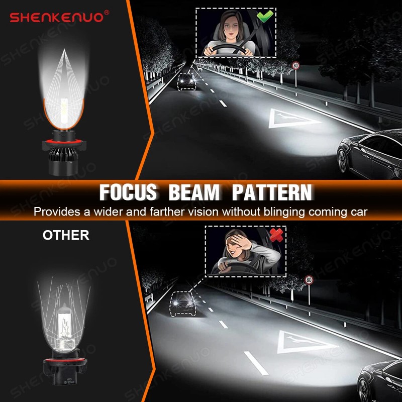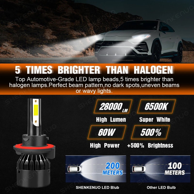 SHENKENUO 6000K Cool White H13 COB LED Headlight Bulbs High Low Beam Upgrand Kits Bright