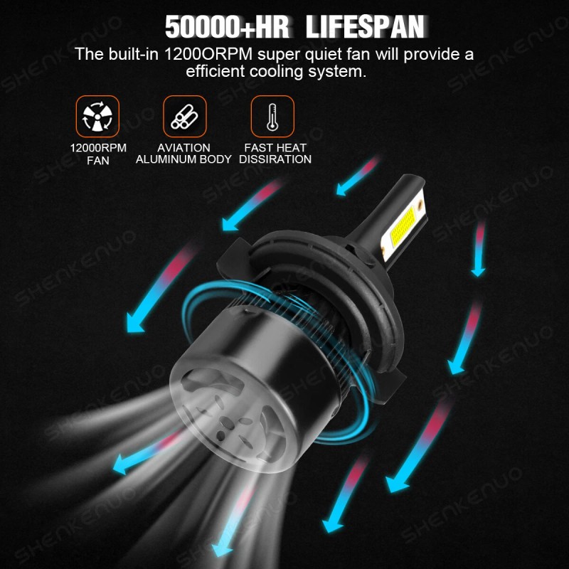 All-in-one heat conduction+high speed mute fan system keep the light bulb in appropriate working temperature
