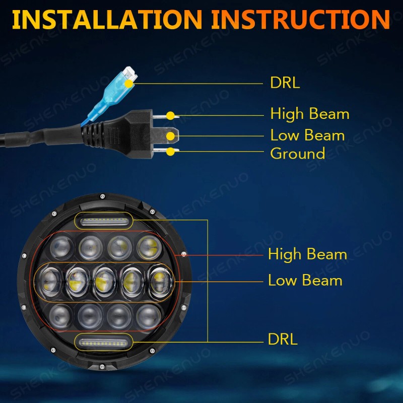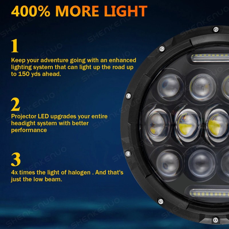 1.7 inch led headlights are made with real LED Chips, 100% brighter than other similar stock 7" headlight or halogen headlight
