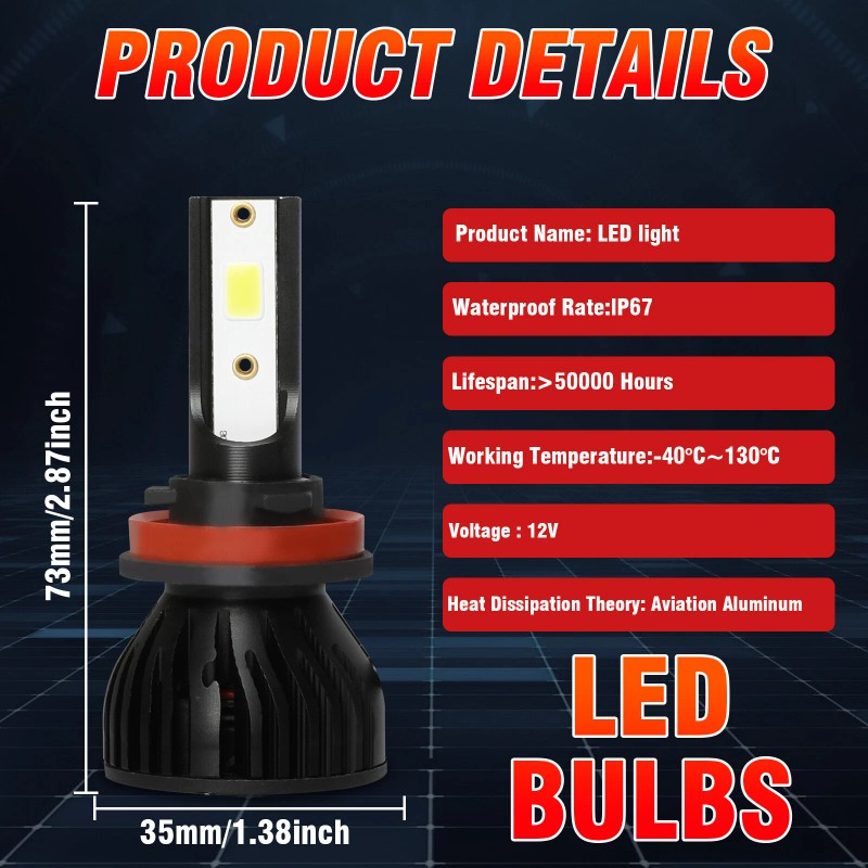 Bulb Type: H8/H9/H11 LED light source: CSP LED Chips,12 SMD Chips