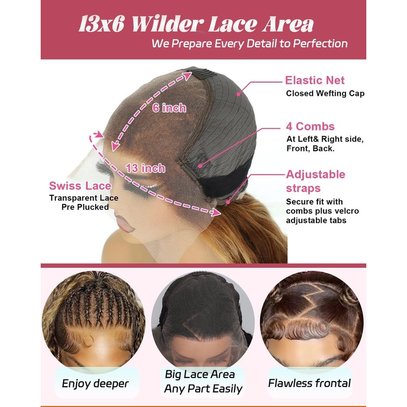 - 【13x6 Highlight Ombre Wigs Human Hair Material】: Ombre Highlight HD Lace Front Wig Human Hair 10A Grade 100% Unprocessed Brazilian Virgin Human Hair Lace Front Wigs . Cut form Young Donor Directly, Shiny and Soft, Could be Change as Your Own Hair.