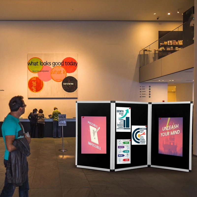 - Product Usage: this portable display panel can be applied for trade shows, company conference displays, various event displays, etc.; You can paste posters, photos, literature, signs, notes or artwork on the flannel to coordinate with your meetings