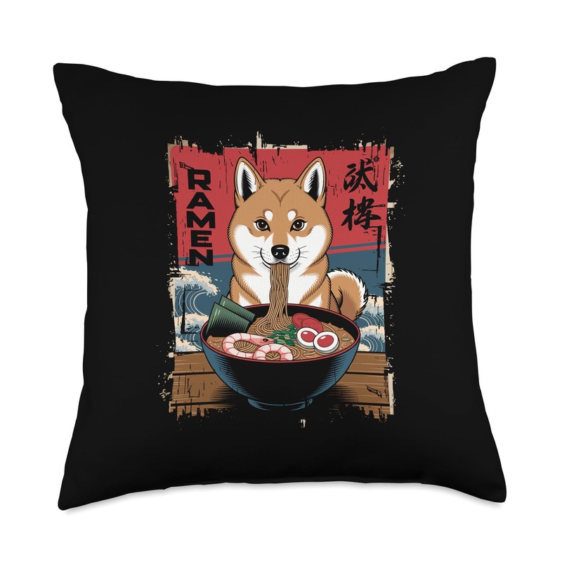 Shiba Inu Ramen 漢字 Japanese Food Cute Dog Anime Throw Pillow