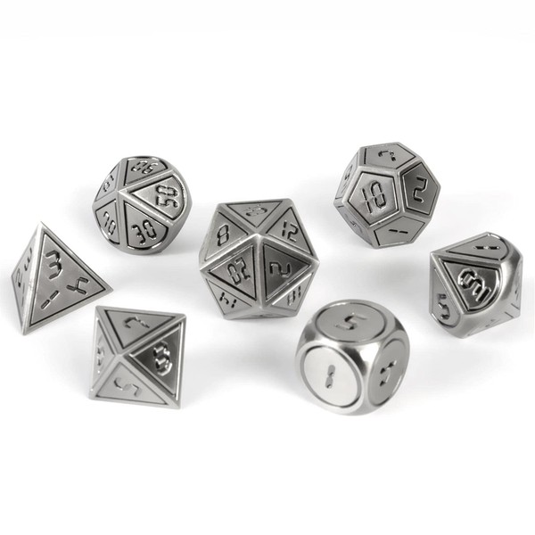 - Metal dice set - The 7-piece dice set includes everything you need for a game: D20, D12, D10 (00-90), D10 (0-9), D8, D6 and D4 dice