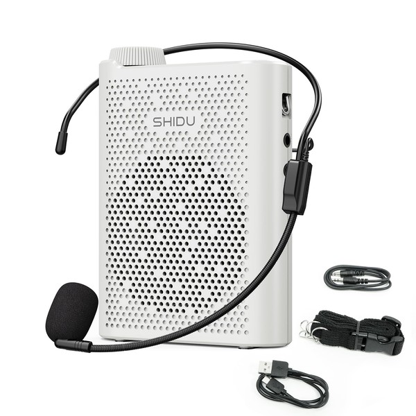 SHIDU Voice Amplifier, 10W Portable Speaker with Microphone Rechargable Personal PA System Support Bluetooth 5.0, TF, AUX for Teacher, Classroom, Tour Guide, Yoga, Speech, Meeting (White)