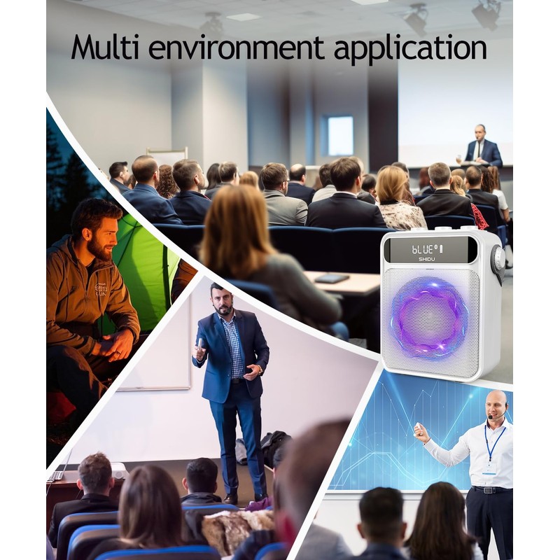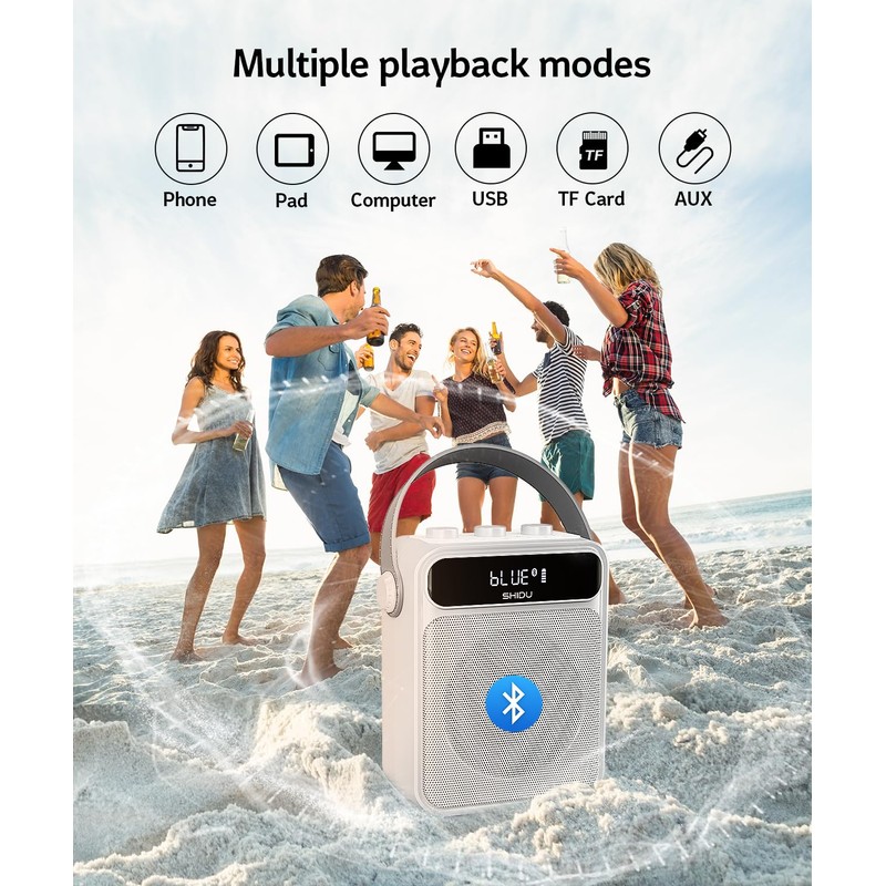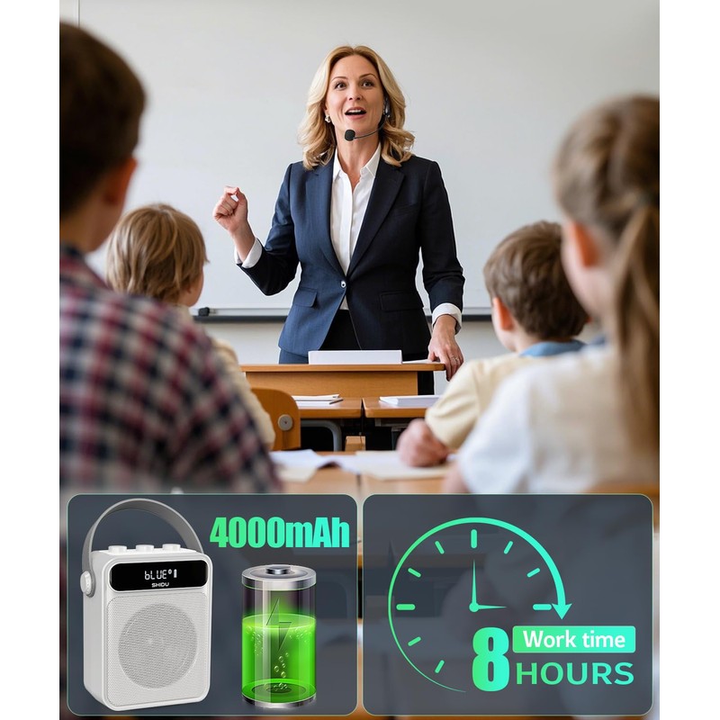 SHIDU Voice Amplifier with Wireless Microphone Headset, Wireless Voice Amplifier for Teacher, Bluetooth Power Amplifier Portable Megaphone PA System for Classroom Speech Meeting Instructor Outdoor