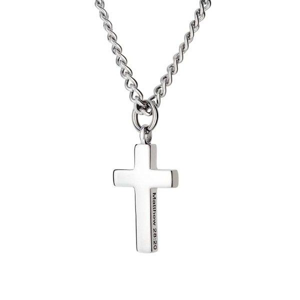 Shields of Strength Mens Stainless Steel Always Cross Necklace Matthew 28:20 Simple Eloquent Design Any Occasion Reminder Faithful Love Mercy Inspiring