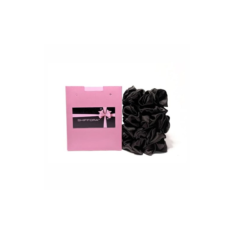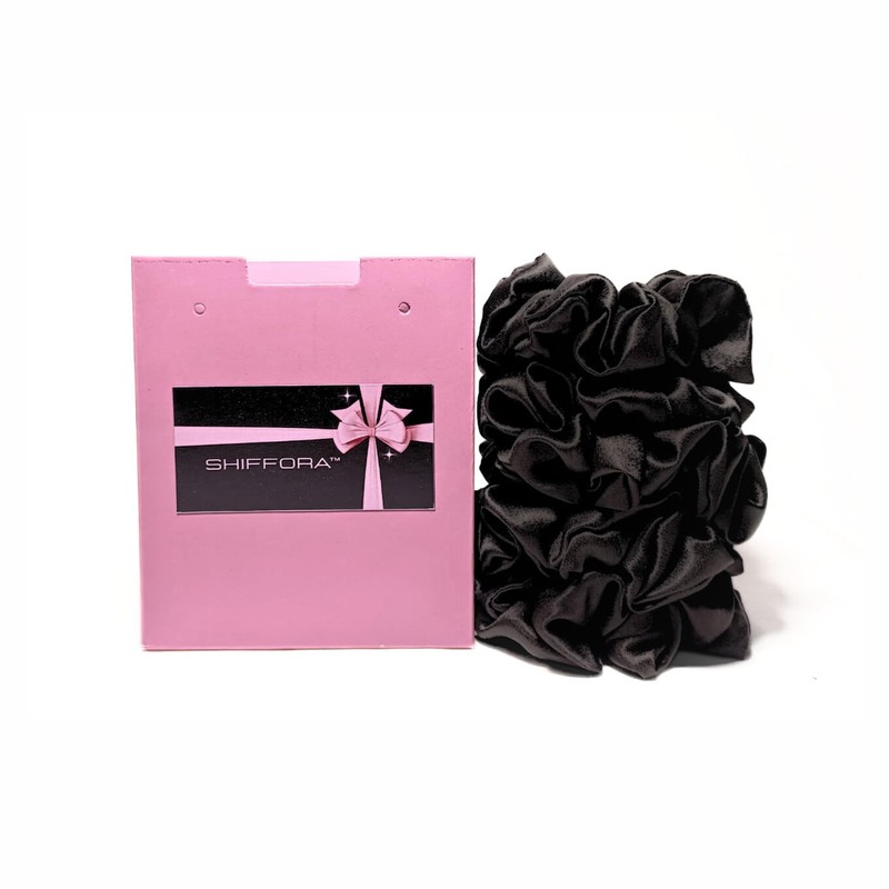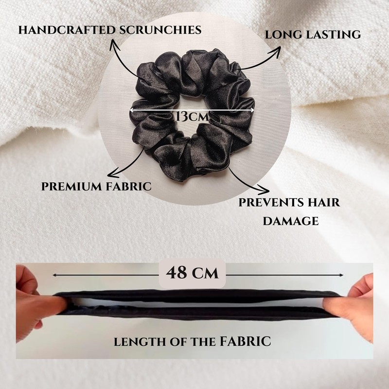 SHIFFORA Satin Silk Scrunchies For Women & Teens, Ponytail Holders, Elastic Bands, Hair Ties (Black) [Pack of 5] With A Surprise Gift