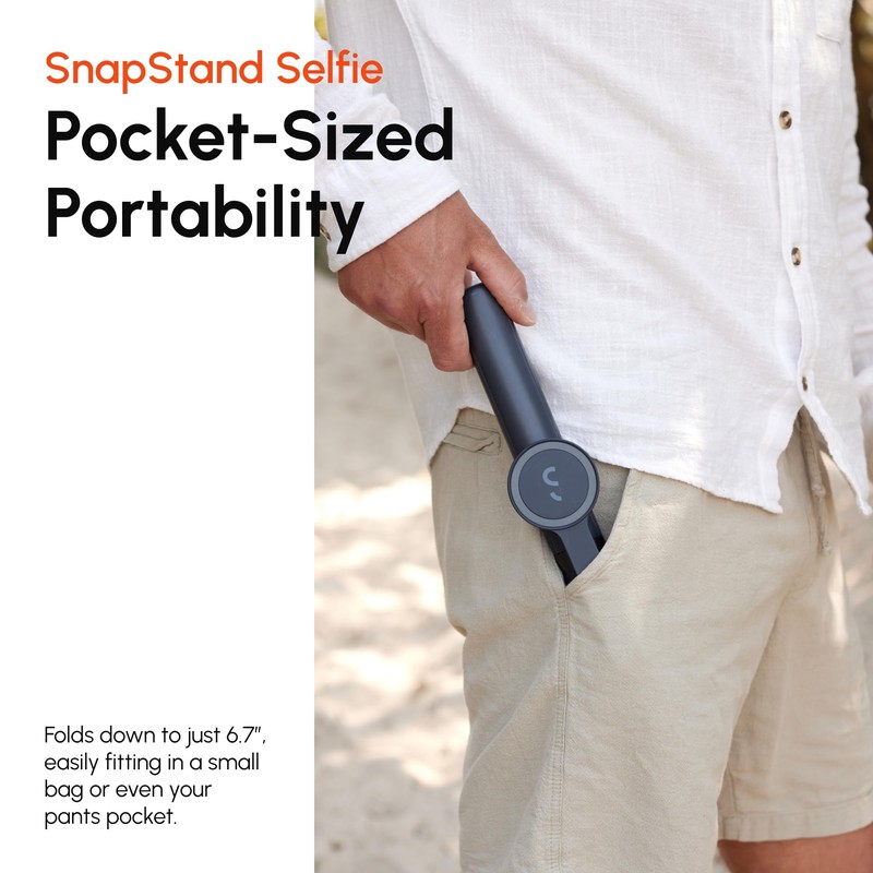 - [Compact and Extendable]: Starts at a pocket-friendly 6.7” and extends up to 30”, giving you the perfect length for any shot, from close-up selfies to wider group photos.