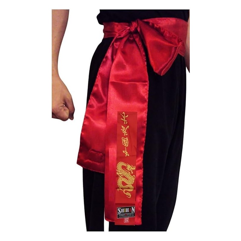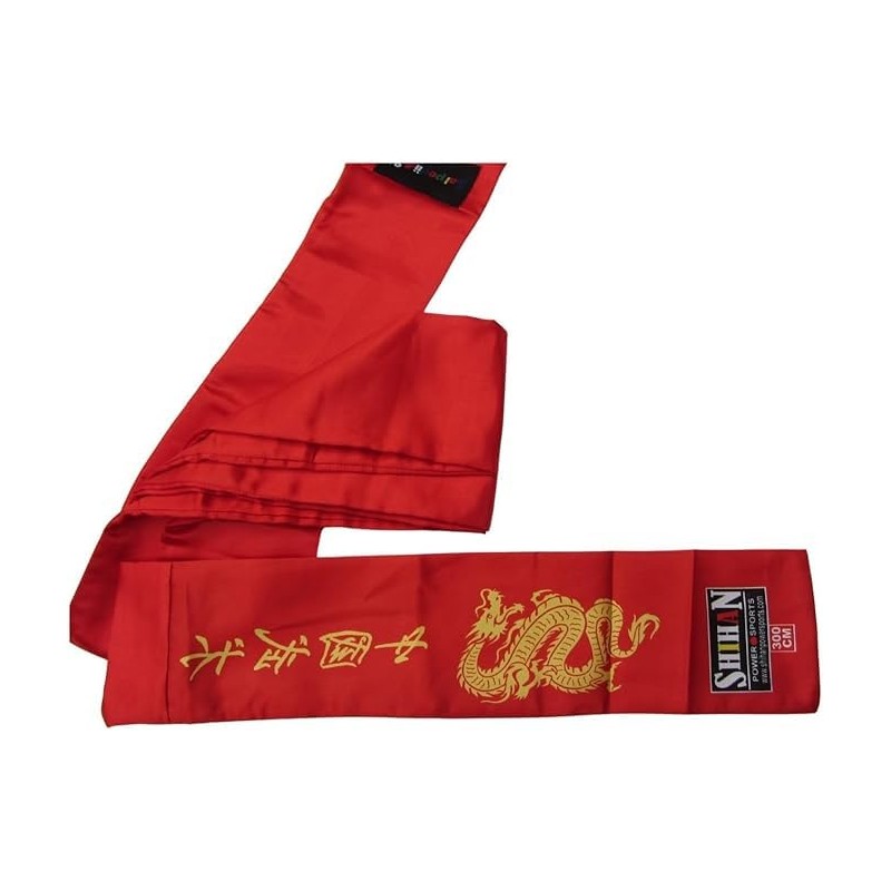 SHIHAN POWER SPORTS Kung Fu Sash RED with Golden Dragon Print Satin 300cm for Men/Women Shaolin Monk Kung fu Belt Wushu Martial Arts Karate Taekwondo Sashes for Uniforms Wing Chun Clothing