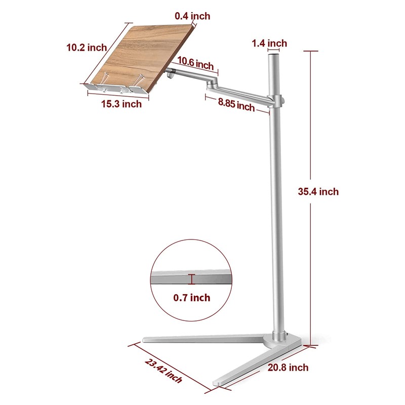 - Adjustable Design : 360° rotated and liftted metal arms (Height can be adjust from 0" to 35") can be adjusted to almost any Angle you need, such as reading while sitting or lying down in bed、hold the laptop/phone/tablet when doing yoga or anytime you want free your hands.