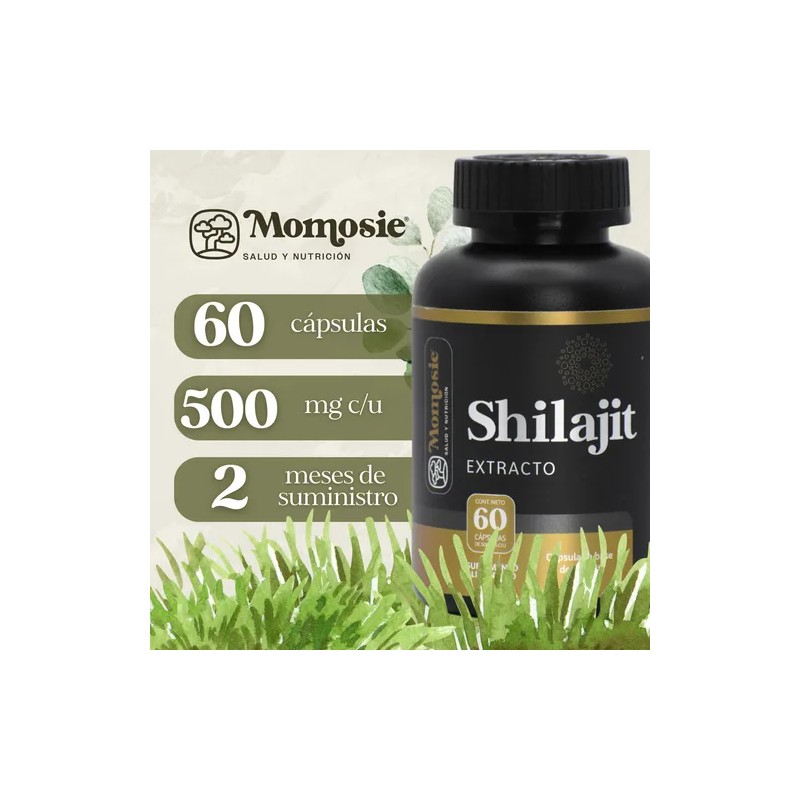 Shilajit 20% Ácido Fúlvico | 60 Caps De 500 Mg | Extracto de Shilajit Puro Del Himalaya en polvo 100% Puro | Momosie