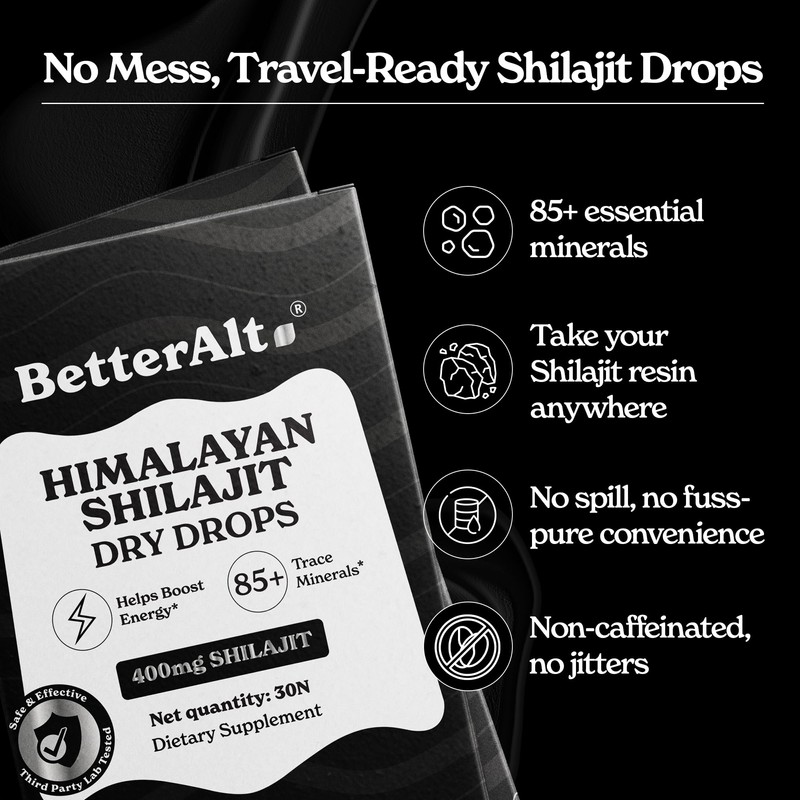 Better Alt Shilajit Dry Drops | Himalayan Superfood | Lab-Tested for Purity | Helps Improve Energy, Stamina | 1-Month Dietary Supplement