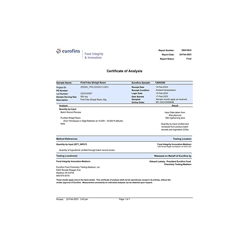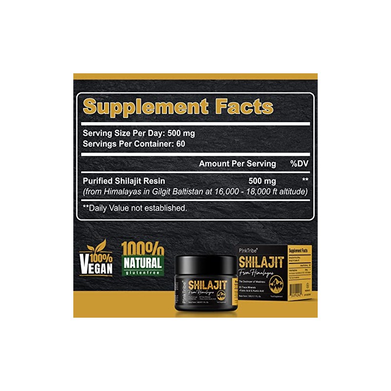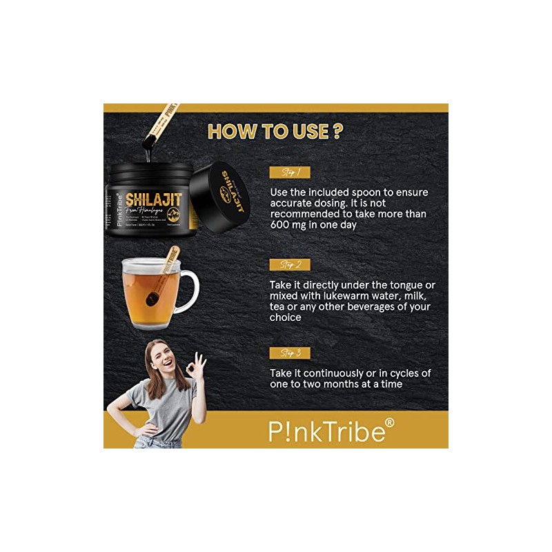 - Outstanding Purity & Top Quality: In its pure form, Shilajit has been minimally processed and presented as thick, tar-like goo. No heavy metals, fillers or additives, vegan friendly. P!nkTribe shilajit resin was safety tested by a professional organization. 100% quality guarantee, you can buy with confidence