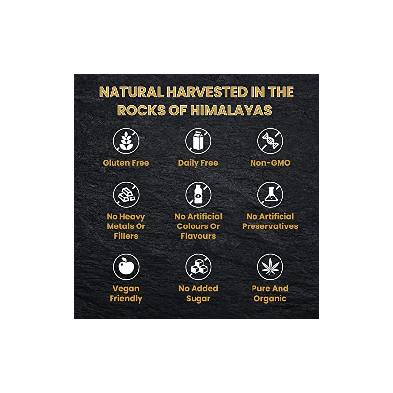 - Phytocomplex: Shilajit is a substance formed by the gradual decomposition of certain plants by the action of microorganisms, which contains important compound known as fulvic acid and humic acid, and is rich in up to 85 minerals, trace Vitamins. It is a potent and very safe food supplement, restoring the energetic balance