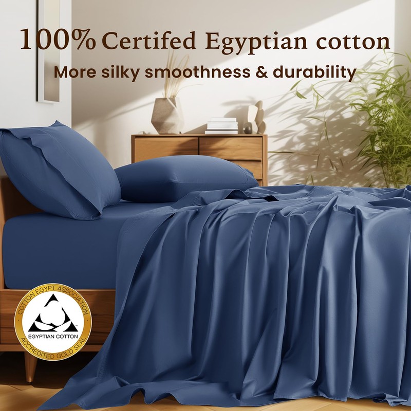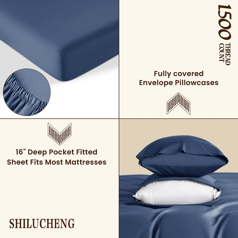 Shilucheng 100% Cotton King Size Sheets Set - 1500 Thread Count,Luxury Egyptian Cotton Bed Sheets,5-Star Hotel Quality Sheets, Breathable & Cooling, 16 Inch Deep Pocket - 4 Piece (Navy Blue)