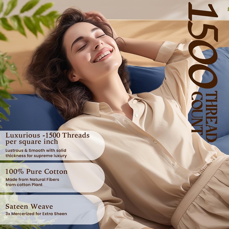 - LUXURY 1500TC COTTON EXPERIENCE: Enjoy the softness of our certified 1500 thread count sateen 100% cotton sheets, providing a modern and sleek five-star hotel experience in your own bedroom. This cotton sheets is keeping you cool in summer and warm in winter, ultra light and soft. It can be used all year round to provide you with a good night's sleep.