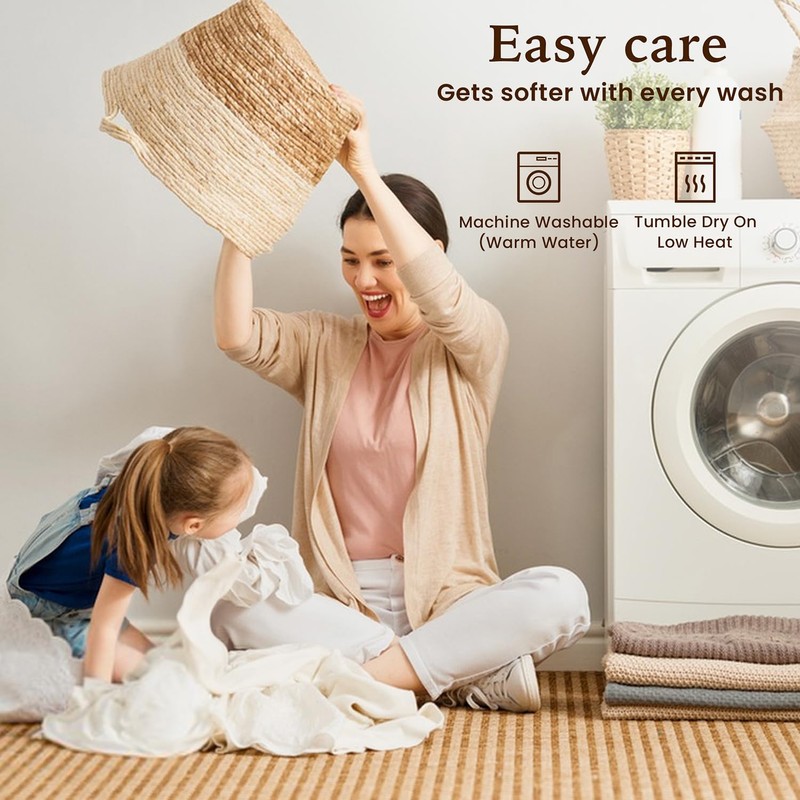 - CARE AND MAINTENANCE: Our cotton sheets are made with high-strength stitching for low maintenance, and all products are machine washable. We recommend machine washing in cold water with a natural vegetable-based detergent on a gentle cycle, tumble dry on low, and recommend similar colors be put together. Low temperature ironing may be used if necessary.